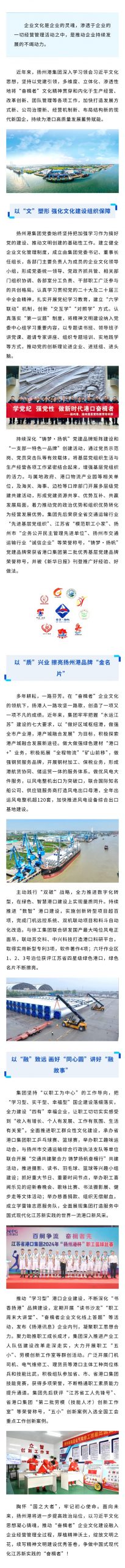 編者按:為貫徹落實省港口集團“奮楫者”企業(yè)文化的核心理念,系統(tǒng)豐富企業(yè)文化“四梁八柱”中“揚州港”特色內(nèi)涵,不斷增強企業(yè)文化的引領(lǐng)力、凝聚力、塑造力、輻射力,提高集團文明度、美譽度、知名度,現(xiàn)開設(shè)【奮楫者 創(chuàng)未來】專欄,展示集團各版塊與“奮楫者”文化的嵌入、融合、發(fā)展新圖景。